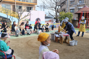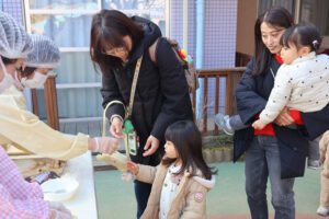 お母さん達から間近でもちつきを見ることが出来て、良い体験が出来たと感想を頂きました。