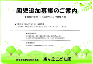来年度(2026年度) 4歳児クラス 若干名